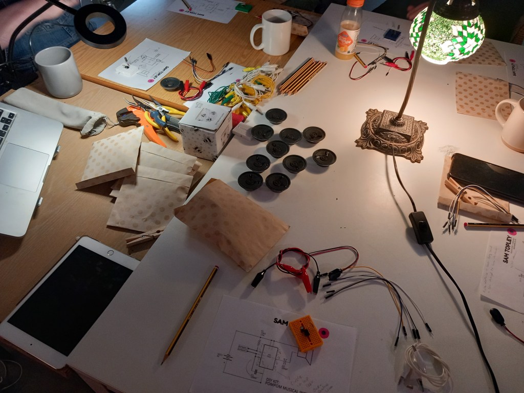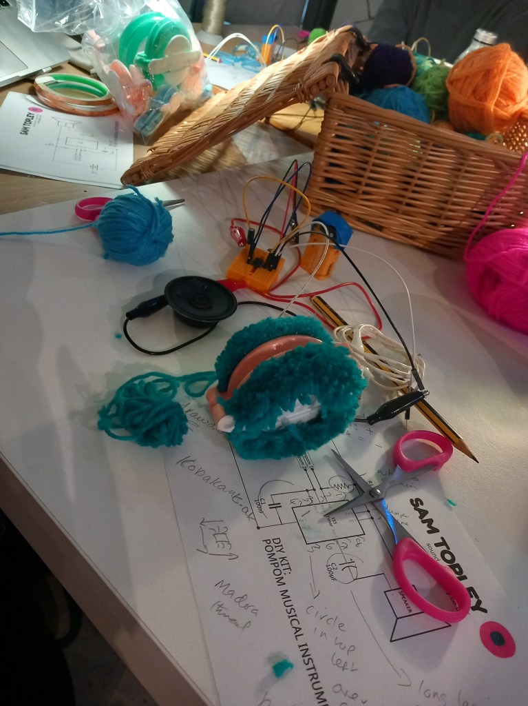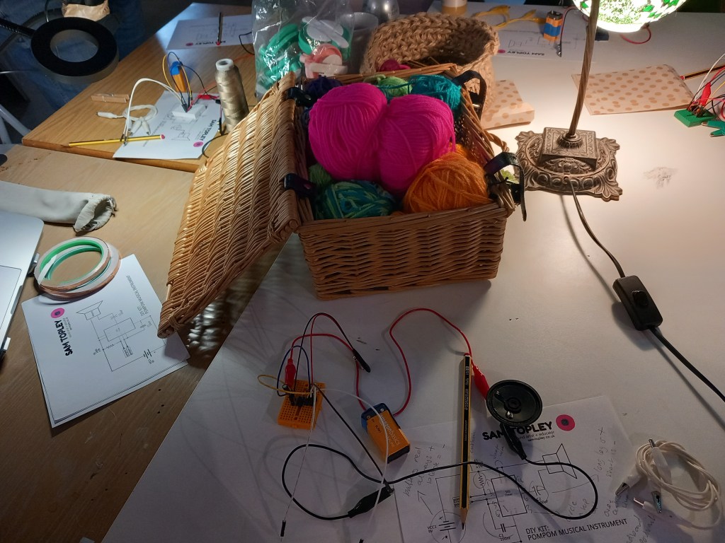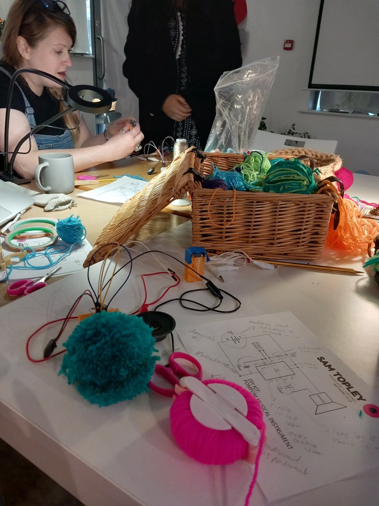 We applied for funding from Bradford Council and Bradford Producing Hub to run the next set of artist led workshops, starting with the amazing Sam Topley and her pom-pom synthesisers. We made a five session project Herrrd: Exploring Bradfords Sonic Heritage, and Sams workshop linked in to how we sonify wool – a medium synonymous with Bradfords textile industry.