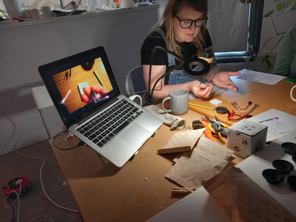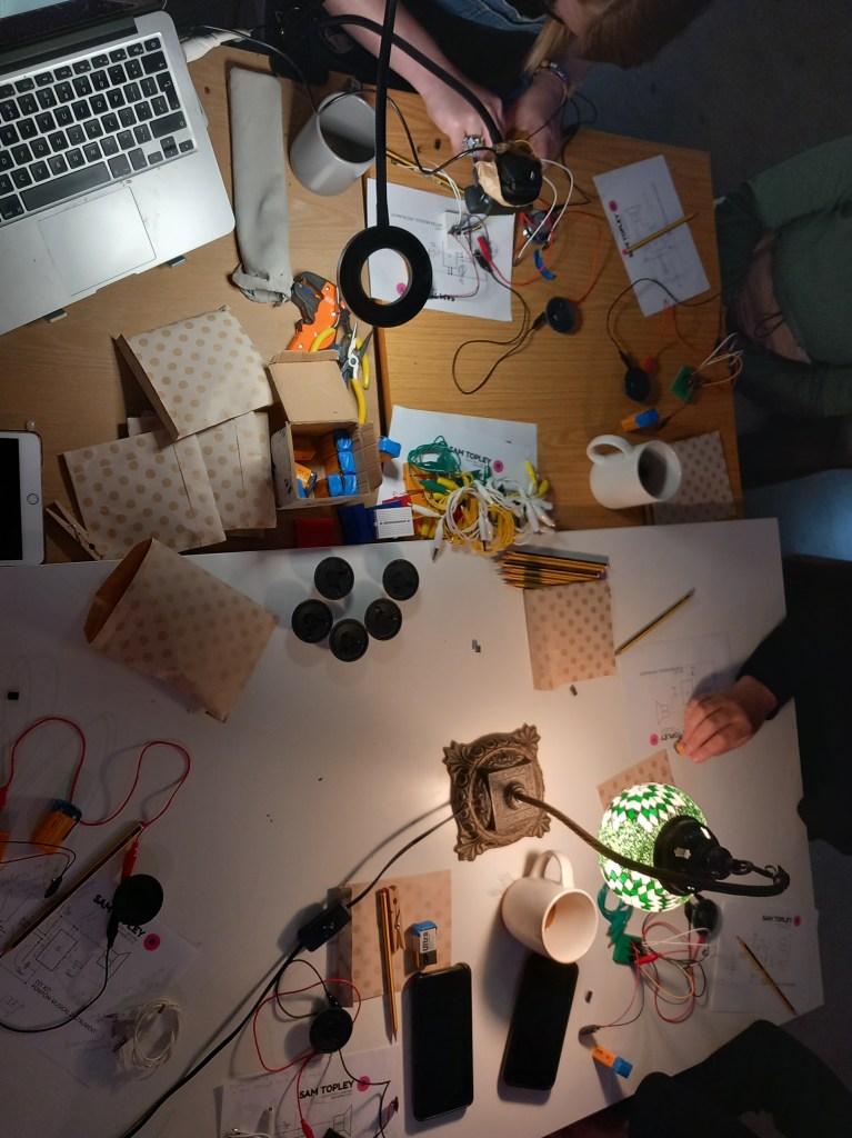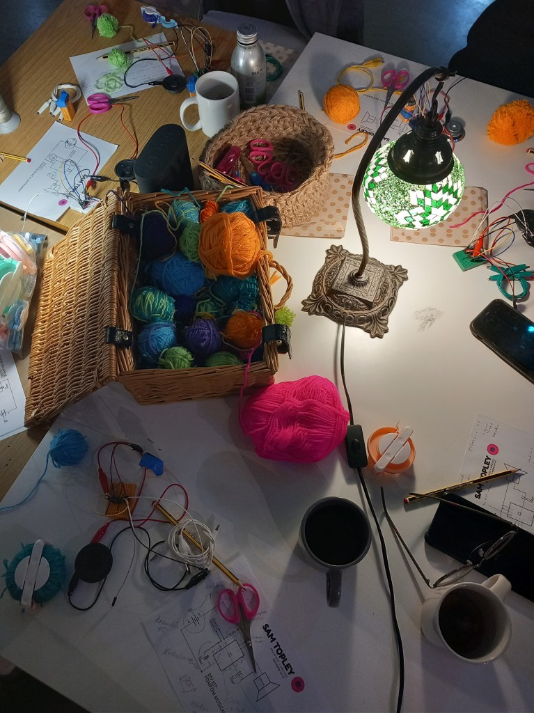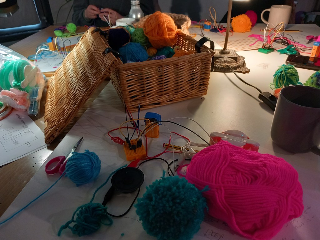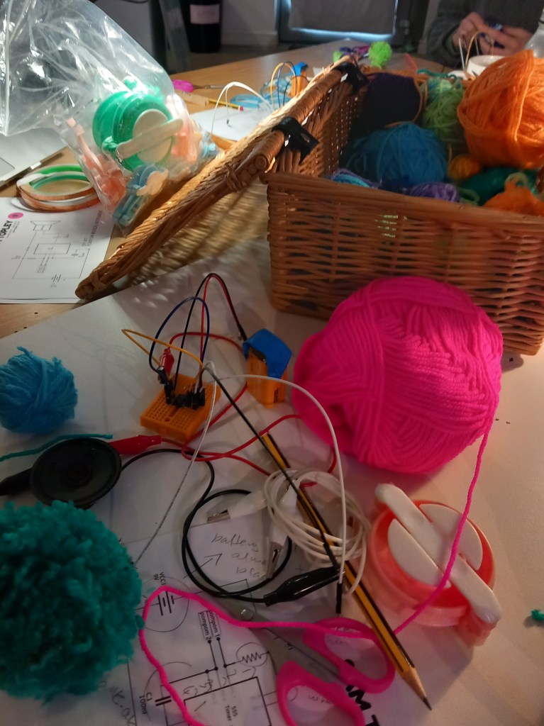 We applied for funding from Bradford Council and Bradford Producing Hub to run the next set of artist led workshops, starting with the amazing Sam Topley and her pom-pom synthesisers. We made a five session project Herrrd: Exploring Bradfords Sonic Heritage, and Sams workshop linked in to how we sonify wool – a medium synonymous with Bradfords textile industry.
